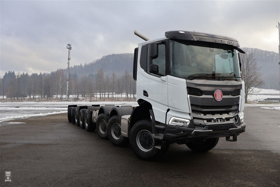 Tatra has build a Phoenix 16×16 chassis for Australia. The impressive truck has five steering axles and all eight, independent suspended axles are driven. The truck is going to get a Bronto Skylift S104HLA installation on its back with a workheight of 103 meters!