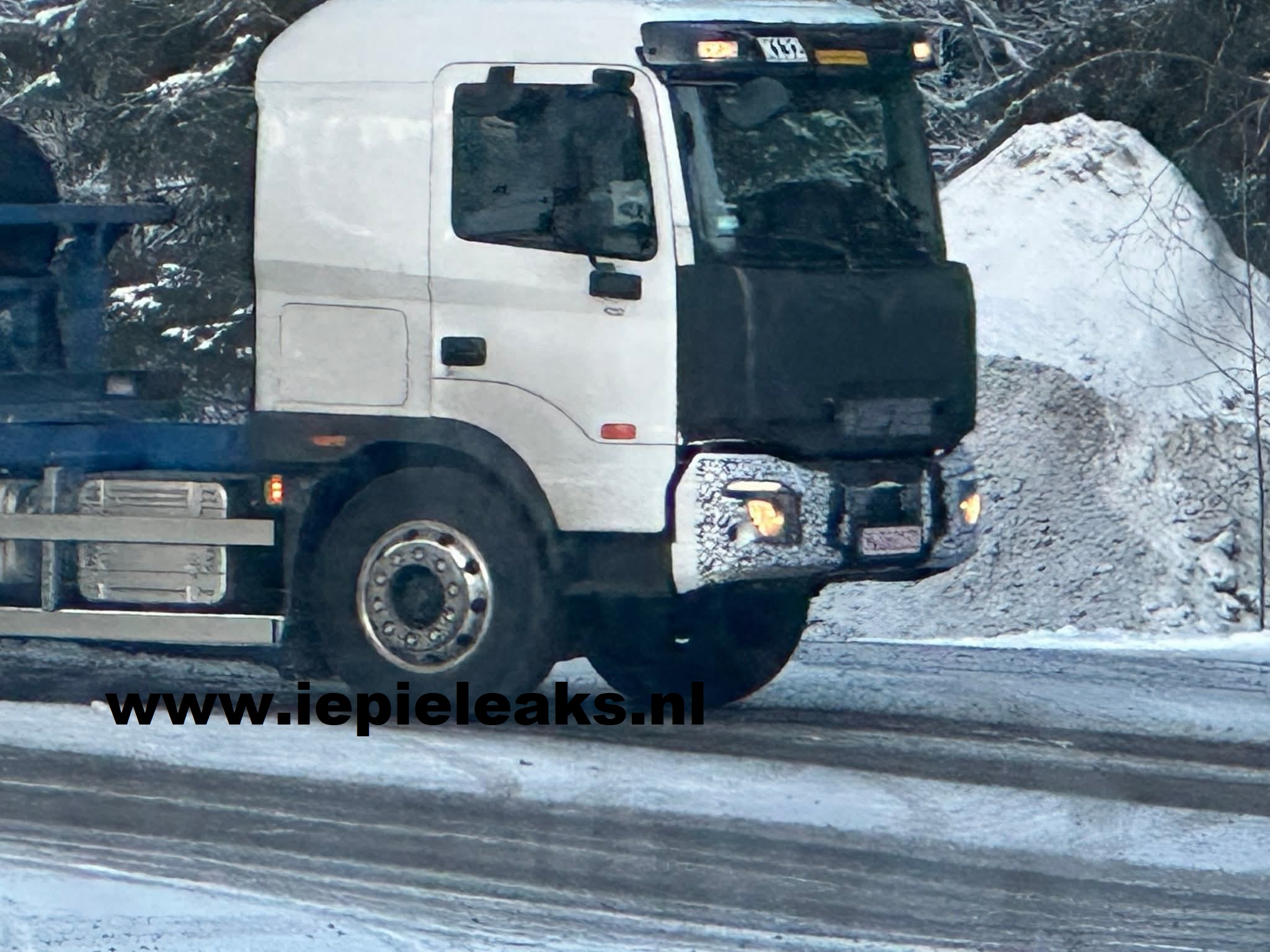 These photo’s of a UDO (Unidentified Driving Object) were sent to us from Finland. It looks like an Asian truck, and it is not electric. Now that is interesting! The only thing we could find out is the name on the mudflaps, of Meindl. That is a German company, building fire- and rescue trucks. Also the licence plates are German.